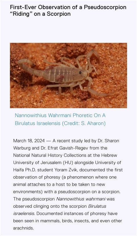 - ‘Kiting’ Behavior: Some pseudoscorpions use silk to hitch rides on flying insects, a behavior called ‘kiting,’ to travel to new locations.