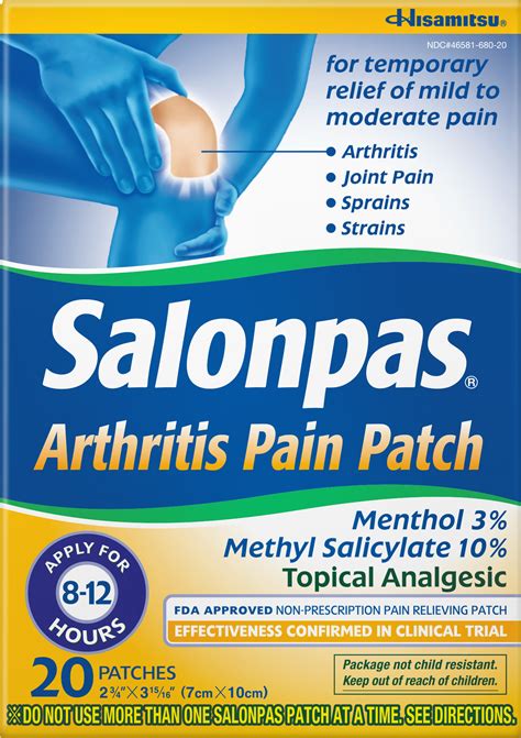 • How often can I apply the Salonpas patches? Follow the instructions on the packaging. The general recommendation is to apply a patch for up to 12 hours, but this can vary depending on the specific product. Don’t exceed the recommended dosage.