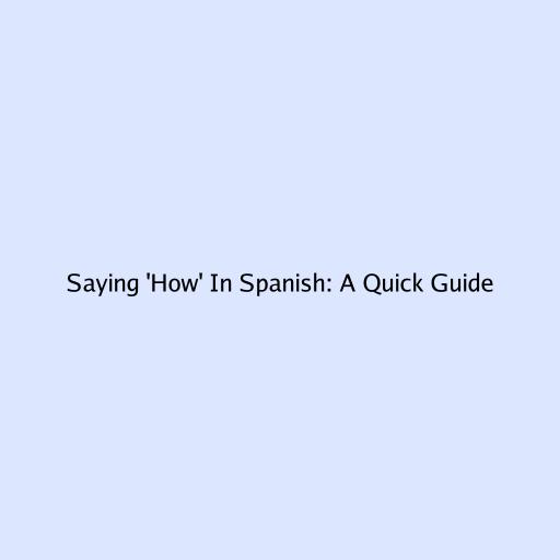 Saying ‘How’ in Spanish: A Quick Guide