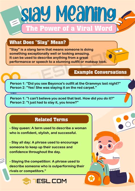 In conclusion, understanding the slay meaning in text is all about staying current with the ever-evolving world of slang. This trendy term has transformed from its original, literal definition to become a powerful expression of admiration, support, and enthusiasm. Whether you’re using it to compliment a friend’s outfit, celebrate an achievement, or simply add some flair to your conversations, “slay” is a versatile word that can enhance your communication. However, it’s important to remember that language is constantly changing, and what is considered cool and trendy today might be outdated tomorrow. That’s why it’s essential to stay curious and open to learning new slang terms and phrases. By doing so, you can keep your vocabulary fresh and relevant, and you can avoid sounding out of touch. In this article, we’ve explored the origins of “slay,” its various meanings and applications, and some alternatives that you can use to expand your compliment vocabulary. We’ve also provided tips on how to use “slay” effectively and appropriately, ensuring that you can communicate with confidence and style. As you continue to navigate the world of slang, remember to be mindful of your audience and the context in which you’re using these terms. While “slay” is widely used among younger people and in online communities, it might not be appropriate in all situations. It’s always a good idea to consider who you’re talking to and whether they’ll understand and appreciate the term. If you’re unsure, it’s best to err on the side of caution and use more universally understood language. Ultimately, the key to mastering slang is to be observant, adaptable, and respectful. Pay attention to how others use these terms, and be willing to adjust your own language accordingly. By doing so, you can communicate effectively and build stronger connections with those around you. So go ahead, embrace the ever-evolving world of slang and have fun with it! Just remember to stay informed, be mindful, and always strive to communicate with clarity and empathy. With these principles in mind, you’ll be slaying it in no time!