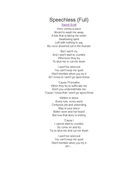 So, how do we, as listeners, find our own power in the Speechless lyrics ? It’s all about connection and application. This isn’t just a story happening to someone else; it’s a mirror reflecting our own potential. When you hear the struggle, the feeling of being unheard, you can say, “Yeah, I’ve felt that.” That recognition is the first step. It validates your own experiences and tells you that you’re not alone. But the real magic happens when you move beyond just relating to the pain and start embracing the message of empowerment. The Speechless lyrics are designed to be an anthem for anyone who has ever felt marginalized or unable to speak up. They’re a call to action, urging us to find our courage and our voice. Think about the specific moments in the song where the tone shifts, where the music swells, and the vocals become more assertive. These are the moments of breakthrough. They symbolize the act of finding your power, of realizing that your words and your perspective have immense value. It’s about understanding that being “speechless” is a temporary state, not a permanent condition. The song encourages us to actively work towards breaking free from whatever holds us back. This might mean challenging your own insecurities, speaking up in a difficult conversation, or simply asserting your right to be heard. The Speechless lyrics provide the emotional fuel for this process. They remind you of your inherent strength and your right to express yourself. It’s a powerful concept: that even after periods of silence, your voice can emerge with newfound force and clarity. This is incredibly empowering because it suggests that past challenges don’t define our future capacity for expression. We can learn, grow, and evolve, turning moments of feeling silenced into catalysts for powerful self-expression. So, the next time you listen to “Speechless,” try to internalize that message. Identify the parts of your life where you might feel silenced, and then use the song as inspiration to find your voice. It’s about recognizing your own worth, owning your narrative, and understanding that your contribution, your perspective, is essential. The Speechless lyrics are more than just a song; they’re a tool for self-discovery and empowerment, a reminder that the power to speak, to be heard, and to make an impact, resides within each of us. It’s about celebrating the journey from silence to song, and understanding that every voice, no matter how quiet it starts, has the potential to be heard loud and clear.