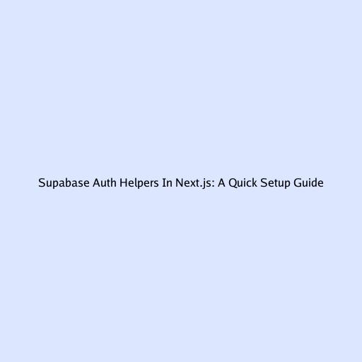 Supabase Auth Helpers In Next.js: A Quick Setup Guide