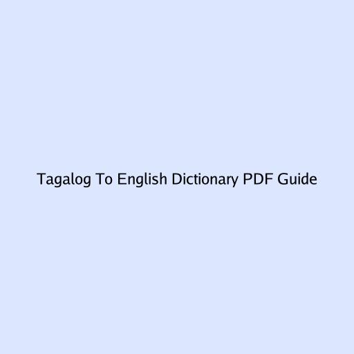 Tagalog To English Dictionary PDF Guide