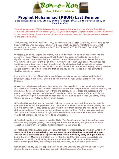 The impact and legacy of the Last Sermon are profound and far-reaching, shaping the lives of Muslims for centuries. The principles articulated in the sermon have served as a moral compass, guiding Muslims in their personal, social, and economic lives. The emphasis on equality, justice, and unity has inspired countless individuals and movements to strive for a better world. The Last Sermon continues to be a source of inspiration and guidance for Muslims today, reminding them of the core values of their faith and the importance of living a life of purpose and integrity. It serves as a testament to the enduring relevance of the Prophet’s message and its ability to address the challenges facing humanity in every age.