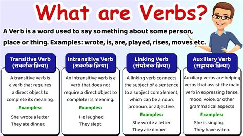 Finally, let’s talk about helping verbs , also known as auxiliary verbs. These guys are the ultimate team players. They work with a main verb to form a verb phrase, and they add extra meaning, like tense, mood, or voice. You can’t have a complete verb phrase without them in many cases! The most common helping verbs are forms of ‘be’ (am, is, are, was, were, being, been), ‘have’ (has, have, had), and ‘do’ (do, does, did). But there are also modal helping verbs like ‘can,’ ‘could,’ ‘may,’ ‘might,’ ‘shall,’ ‘should,’ ‘will,’ ‘would,’ and ‘must.’ These modals add a layer of nuance, expressing possibility, obligation, or permission. For instance, in “He is running ,” ‘is’ is the helping verb supporting the main verb ‘running’ to form the present continuous tense. In “They have finished the project,” ‘have’ helps ‘finished’ to create the present perfect tense. And “She will arrive tomorrow” uses ‘will’ to indicate a future action. Modal verbs are super cool because they allow us to express shades of meaning. “You can go now” expresses permission, while “You should study for the test” expresses advice or obligation. “It might rain later” suggests a possibility. Helping verbs are essential for forming questions (” Did you eat?“), negative statements (“I do not like it”), and passive voice (“The cake was eaten ”). They provide the grammatical scaffolding that allows the main verb to express its full meaning and function within the sentence. So, even though they might seem secondary, helping verbs are indispensable for creating complex and grammatically correct verb structures. They are the behind-the-scenes magic that makes our sentences work!