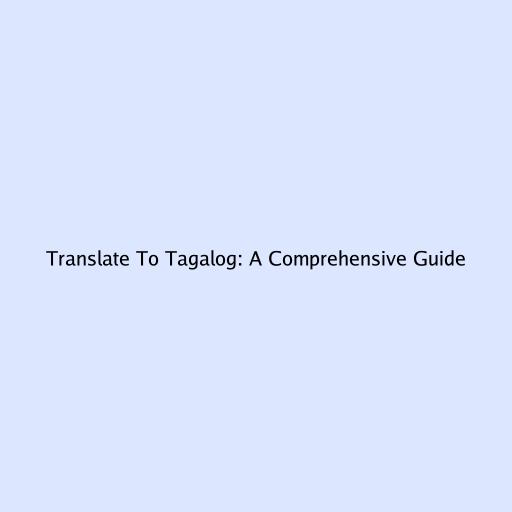Translate to Tagalog: A Comprehensive Guide