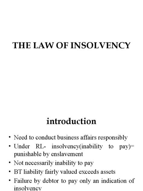 Hey guys, let’s dive into the nitty-gritty of insolvency law . So, what exactly is it, and why should you care? Basically, insolvency law is the legal framework that deals with situations where individuals or companies can’t pay their debts. It’s a pretty crucial area of law because it affects businesses, individuals, and the economy as a whole. When someone or some entity is declared insolvent, it means they are unable to meet their financial obligations as they fall due. This can happen for a whole host of reasons – maybe a business took on too much debt, faced unexpected economic downturns, or simply made poor financial decisions. On the flip side, insolvency can also be a path towards a fresh start. For individuals, it can mean a way to get out from under overwhelming debt. For companies, it can be a structured process to reorganize, rescue the business, or, if all else fails, to wind down operations in an orderly manner.