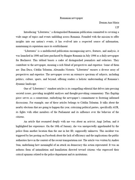 • România Liberă: România Liberă , meaning “Free Romania,” has a long and storied history, dating back to the 19th century. It is known for its advocacy for liberal values and its commitment to independent journalism. Throughout its existence, România Liberă has often been at the forefront of political and social debates, challenging authoritarian regimes and championing democratic principles. Its archives offer a valuable perspective on the political transformations that Romania has undergone, particularly during periods of upheaval and transition.
