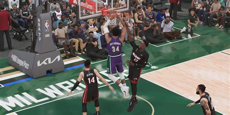 • Timing: Timing is key! Learn the perfect moment to initiate the dunk. Don’t go for a dunk when you’re heavily guarded. Instead, try to drive into space or wait for a teammate to create an opening for you. Practice in the MyCOURT or a practice facility until you feel comfortable with the timing. Proper timing will help you finish at the rim and avoid blocked shots.
