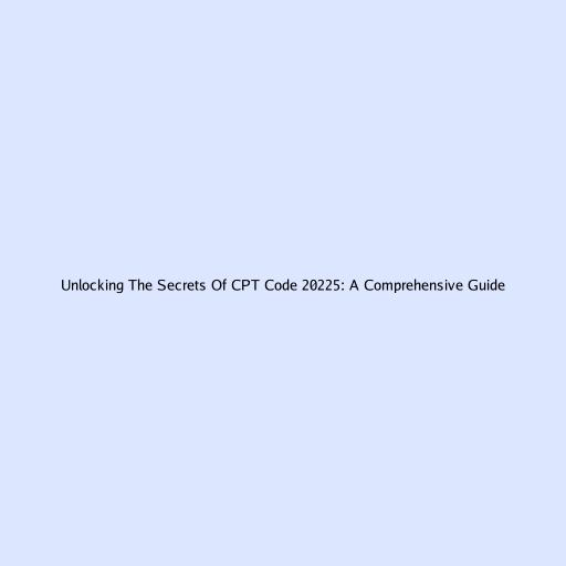 Unlocking the Secrets of CPT Code 20225: A Comprehensive Guide