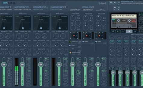 • Master Section (Middle) : This section allows you to control the overall volume and settings for your audio mix. You can adjust the master volume, apply EQ, and more.