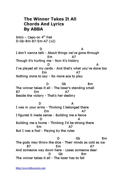 • YouTube: Search for “Winner Takes It All chords tutorial” to find video lessons. There are many great video tutorials available, including both beginner-friendly lessons and advanced techniques.