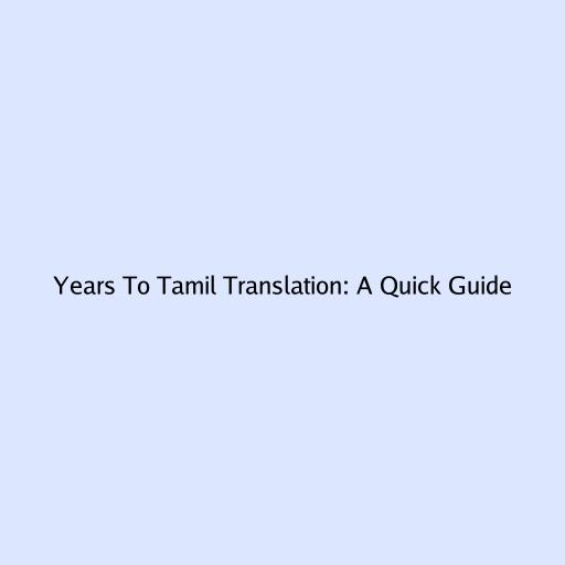 Years to Tamil Translation: A Quick Guide