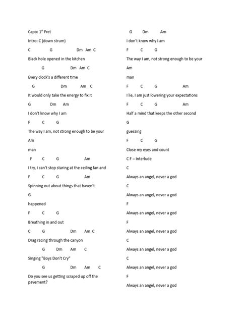Tips for Smooth Transitions: Practice switching between the chords regularly. Start slowly, focusing on clean transitions. Use the strumming pattern to help keep the rhythm. Listen to the song and try to match the timing. Use a metronome to keep a steady tempo. Practice the chord changes frequently, and your fingers will learn to move automatically. The more you practice the transitions, the more fluid your playing will become. Be patient and consistent in your practice, and you’ll see your skills improve.